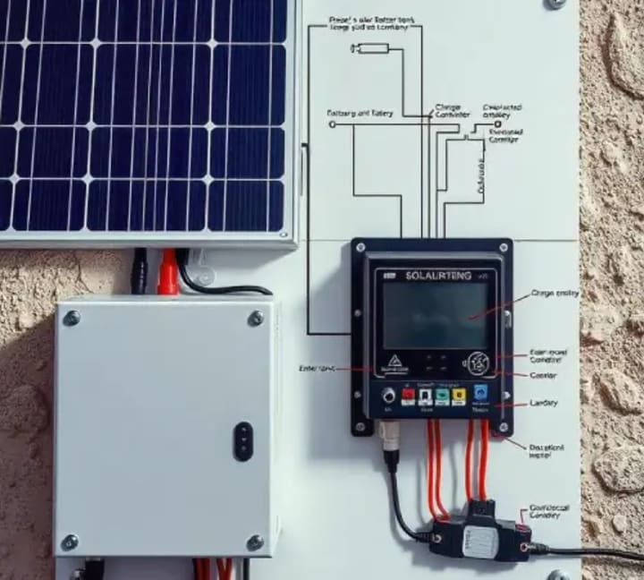 If your system includes batteries, a charge controller regulates the voltage and current going into the batteries to prevent overcharging or damage. The wiring diagram will show how the charge controller is linked between the solar panels and the batteries.
