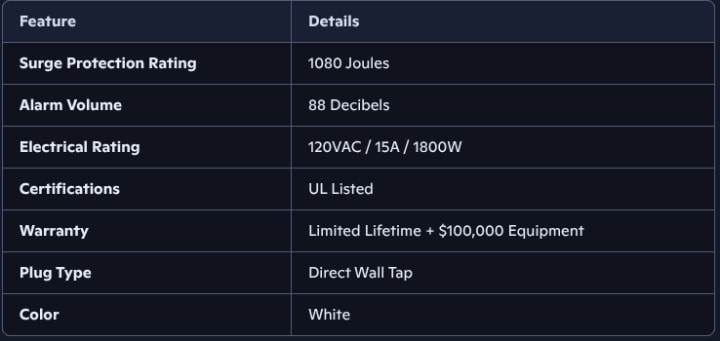 - UL Listed – Meets rigorous safety standards for surge protection.