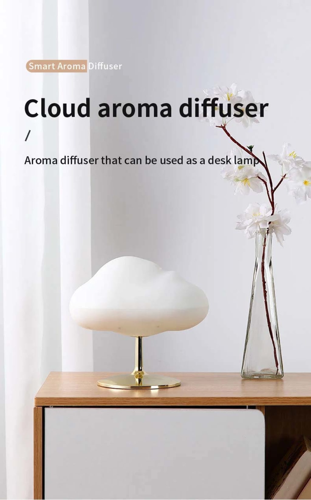 We are excited to introduce you to our cloud-shaped humidifier, an all-in-one product that serves as an aromatherapy diffuser, desk humidifier, and mood-enhancing light. Our humidifier is not just functional but also visually appealing, adding a touch of elegance to your living room, bedroom, or office space.