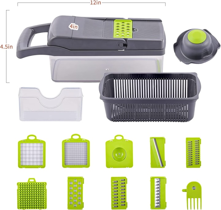 This multifunctional vegetable slicer set allows you to easily dice, cut, chop, or crush any vegetable or fruit with minimal effort. The included strainer makes draining food a breeze, saving you time during cooking.