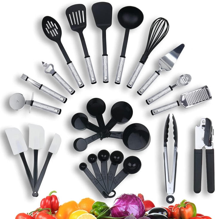 The Kitchen Set 26 Piece is not only a great addition to your own kitchen but also makes for a perfect gift. Whether for a new home or someone's first kitchen, this set is an ideal choice to present to loved ones. Its comprehensive range of utensils and attractive design make it a thoughtful and practical gift option.