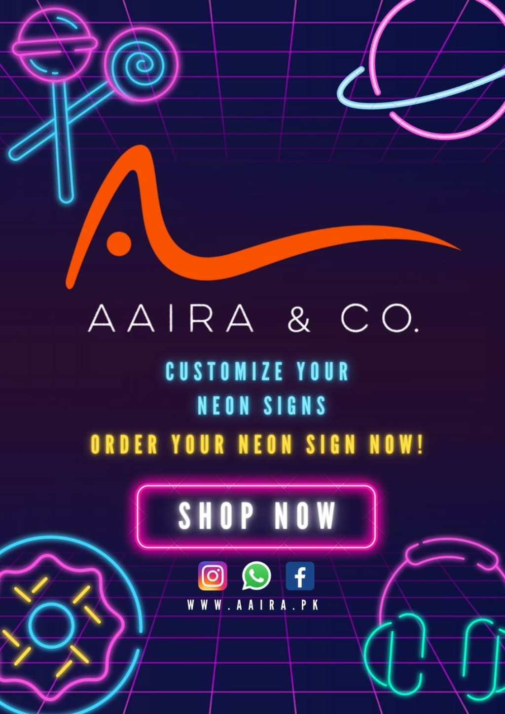 aaira.pk provides you Handmade Personalized Large Neon Lights Sign Home Decor, Rooms, or Any Party You WantTo Decorate With This Neon LED Signs