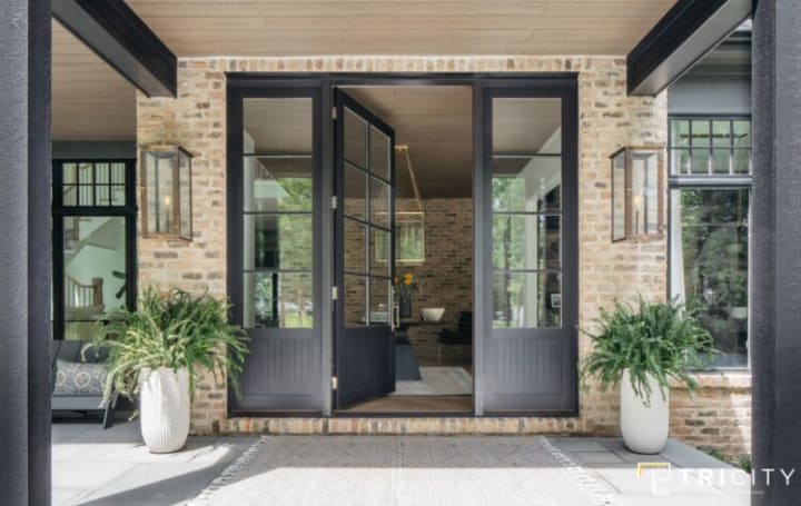 You can make the matter black panels match different tones of wood. If you are feeling a little innovative, you can choose different colors of wood panels and use them together with the matte black panels. This will make your main door a little decorative.