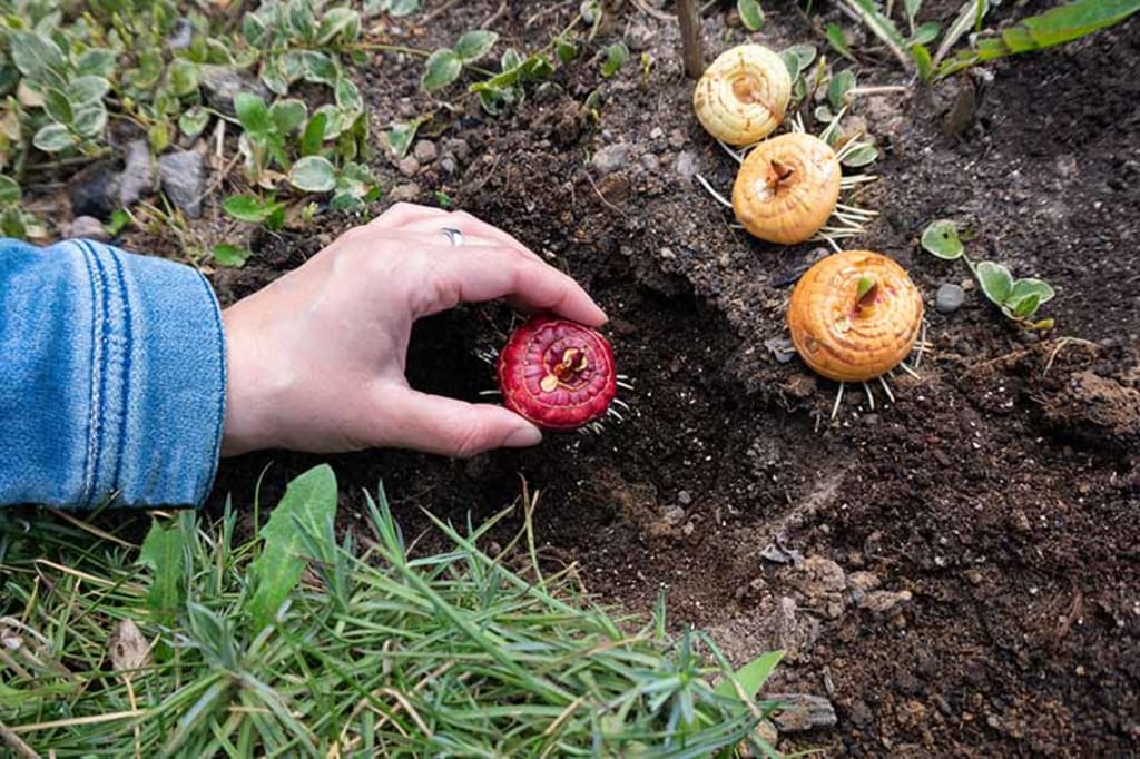 Place the corm into the hole approximately 4 inches deep, with the pointed side facing upwards. Then cover the corm with soil and then press it firmly.