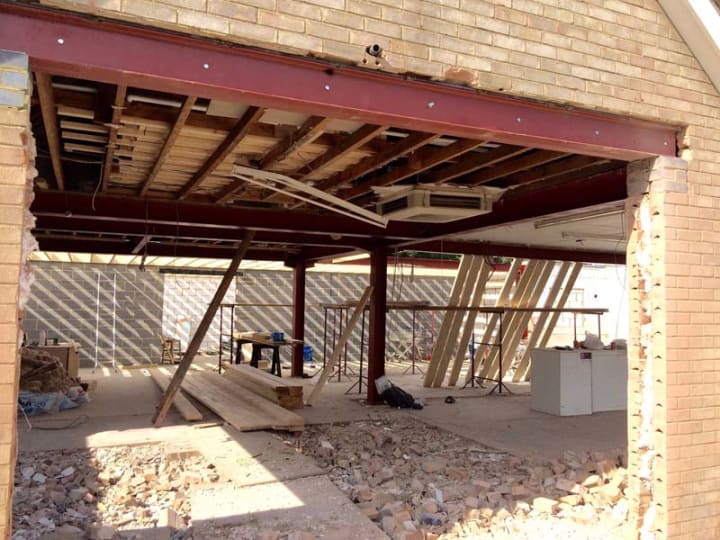 As in the image above, you can see how critical the RSJ (Rolled Steel Joist) is and how it plays an important part in providing the building with support. Without the RSJ in place, the brickwork and roof structure above will collapse.