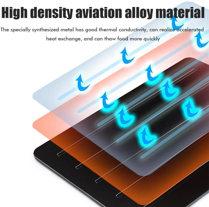 First off, let me tell you a little bit about the thawing plate itself. Made from high-quality aluminum, this plate is designed to help thaw your frozen meats and vegetables in a natural and safe way. Unlike traditional thawing methods like microwaving or leaving your food out on the counter, this plate uses the power of thermal conductivity to defrost your food quickly and evenly. This means that your food won't end up partially cooked or soggy, but instead will retain its original texture and flavor.