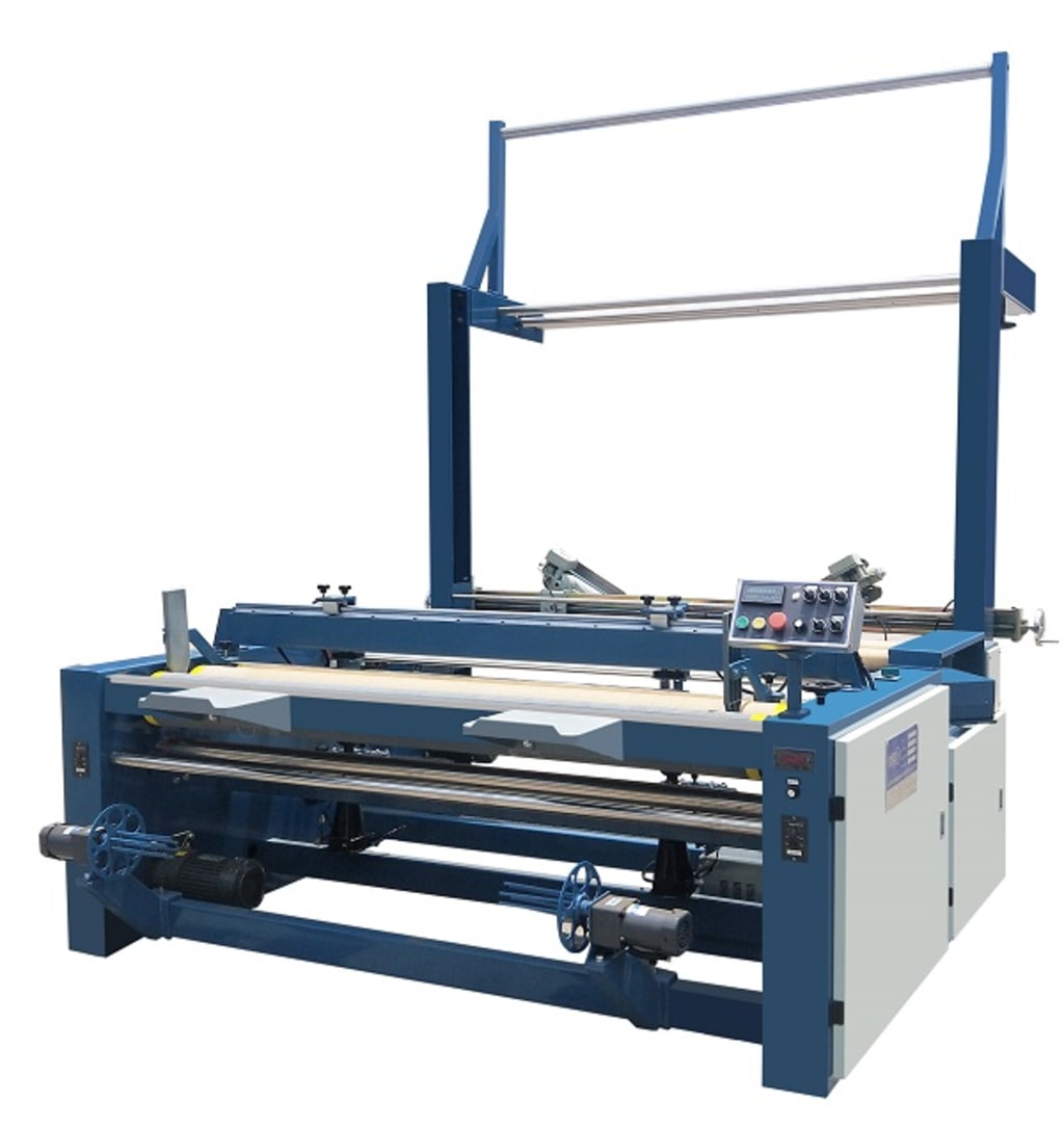 The SUNTECH ST-USCM cloth roll cutting machine may be used to trim the selvedge of fabric or to cut it into stripes.