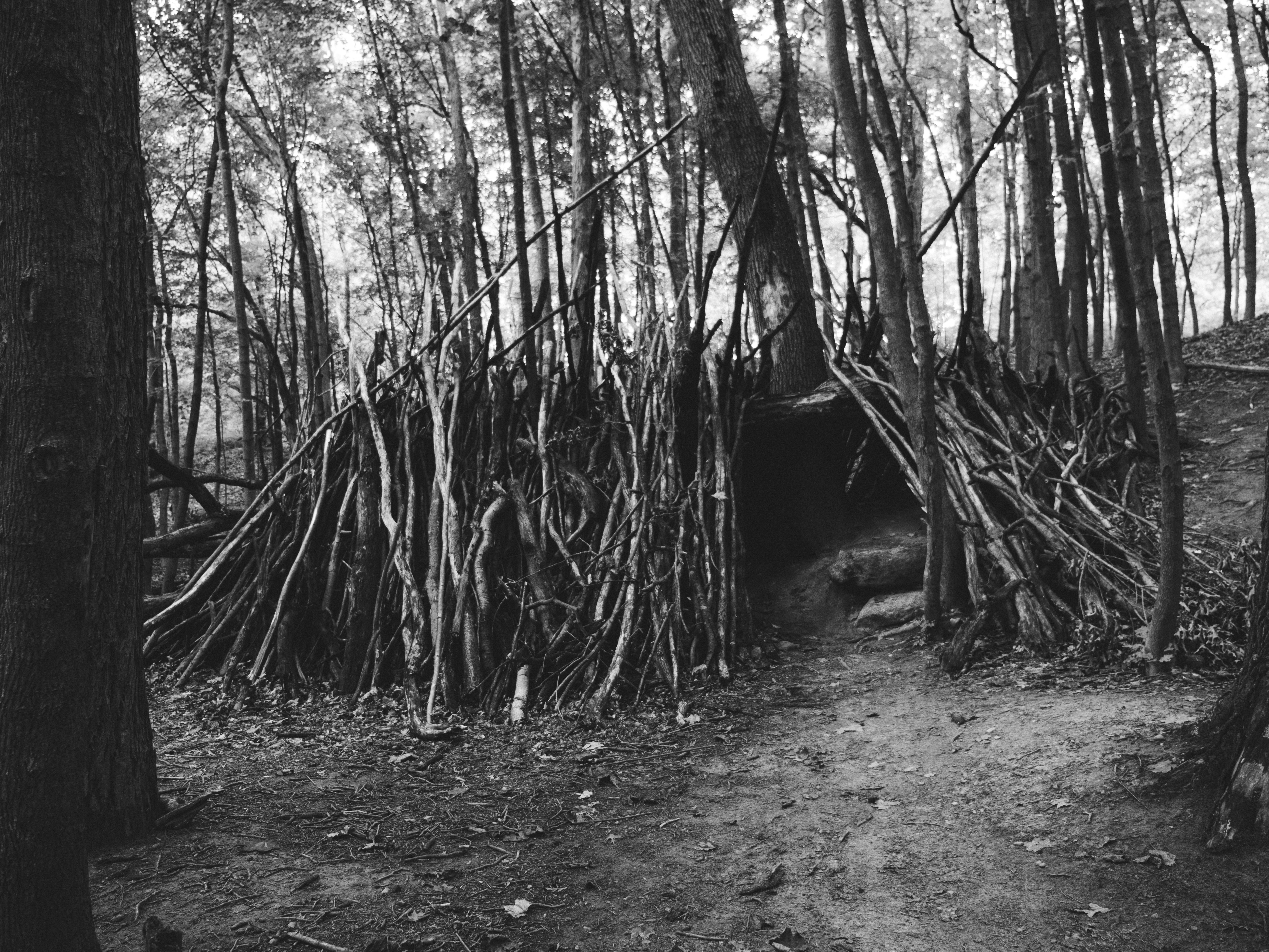 To do it, you ought to find a large branch and also lean one end against a tree. Then put smaller branches in 45-degree angles across the large branch's length and cover the whole structure with foliage and leaves.
