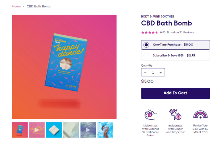 The last company I found is called Happy Dance. You may have heard of the actress Kristen Bell. I love her! Well, she started a new company called Happy Dance and all of their bath bombs have CBD in them.