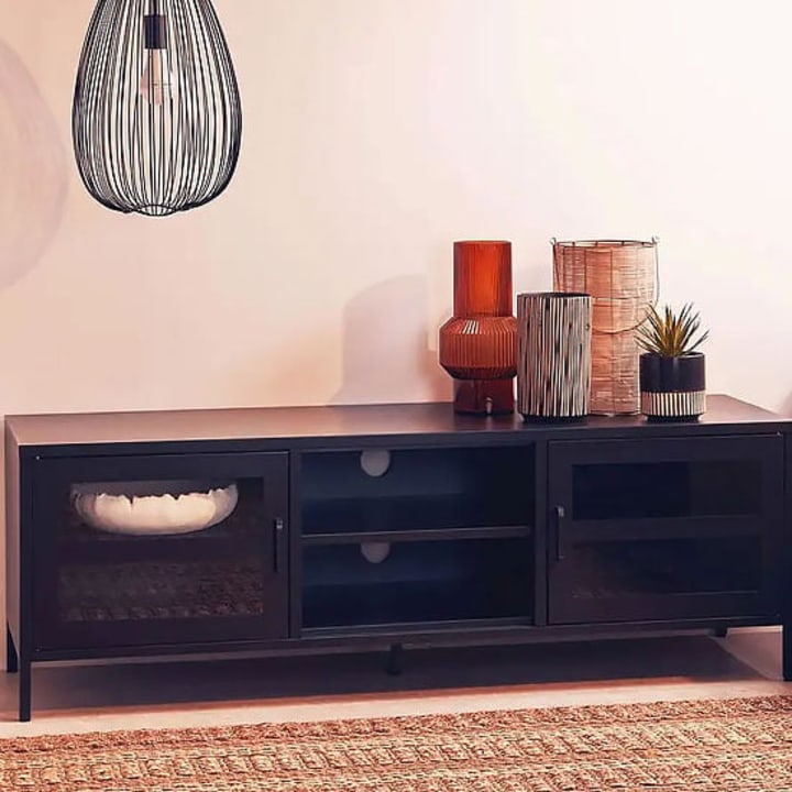 An industrial style living room isn’t complete without the introduction of Industrial TV Stands. As they typically provide you with a central focus to the room and a place to locate your TV. TV stands are quite often a pain point for many homeowners as it can be pretty difficult to combine both function and aesthetics when it comes to this unique furniture piece. However, industrial style TV stands seem to break the mold as they offer the best of both worlds. There are a number of designs to choose from, whether you are looking for a long, low, and sleek TV stand or a tall, short TV stand. There are a number of designs to fit any room shape and size. They offer a wide range of storage opportunities however most TV stands are all fitted with some open shelves, this allows you to gain clear access to any satellite boxes, devices or sound bars and the backs of these open shelves will usually display a circular cut out hole at the back, making it easy for you to gain access to the power sockets behind. Many designs will also offer drawers or cabinet storage, which is perfect for games, remote controls and other accessories, as they allow you to shut these items away and keep your living room clutter-free. The design details that can be included on industrial cabinets are metal barn door runners, handles and hinge details that all add an industrial edge to these unique and warm wooden structures.