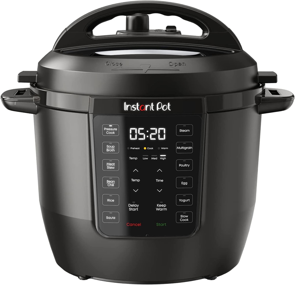 The Instant Pot is a popular kitchen gadget that has gained a lot of attention in recent years. It is a 7-in-1 multi-cooker that can be used as a pressure cooker, slow cooker, rice cooker, yogurt maker, steamer, sauté pan, and food warmer. The latest version of the Instant Pot features an updated design with a slim profile and a matte black finish. It also includes an anti-spin inner pot that makes sautéing and stirring easier. The control panel is easy to use, and a new cooking progress indicator keeps you updated on your cooking progress. With 13 customizable smart programs, you can pressure cook a variety of meals including ribs, soups, beans, rice, poultry, yogurt, desserts and more, making it a quick one-touch cooking option. It can cook meals up to 70% faster than traditional cooking methods or slow cook your favorite homestyle recipes. The Instant Pot is also very easy to clean with dishwasher-safe lid, inner pot, and accessories. The safety features include over 10 safety features, plus overheat protection and safe-locking lid. The Instant Pot is perfect for growing families, or meal prepping and batch cooking for singles as it can cook for up to 6 people. It also features a versatile inner cooking pot made of food-grade stainless-steel, with a tri-ply bottom for more even cooking and perfect for sautéing. To make it even more versatile, the Instant Pot has a free app with amazing recipes to help you create quick new favorites and prepare delicious meals, available on iOS and Android.