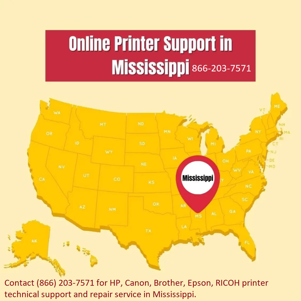 It can be costly to repair a traditional printer, especially for small firms. Mississippi printer support services offer solutions that are scalable and tailored to different demands of them, whether for individuals, home offices, or large corporations. Users may get expert help for a fraction of the cost of costly on-site visits, ensuring that businesses remain working efficiently without exceeding their budget. Contact (866) 203-7571 for HP, Canon, Brother, Epson, RICOH printer technical support and repair service in Mississippi.