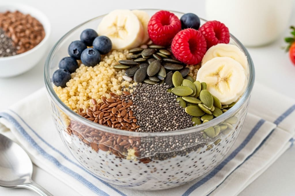 Because chia and flax seeds expand in water, they create a feeling of fullness, helping control appetite and reduce overeating — a key factor for weight management. 🍏