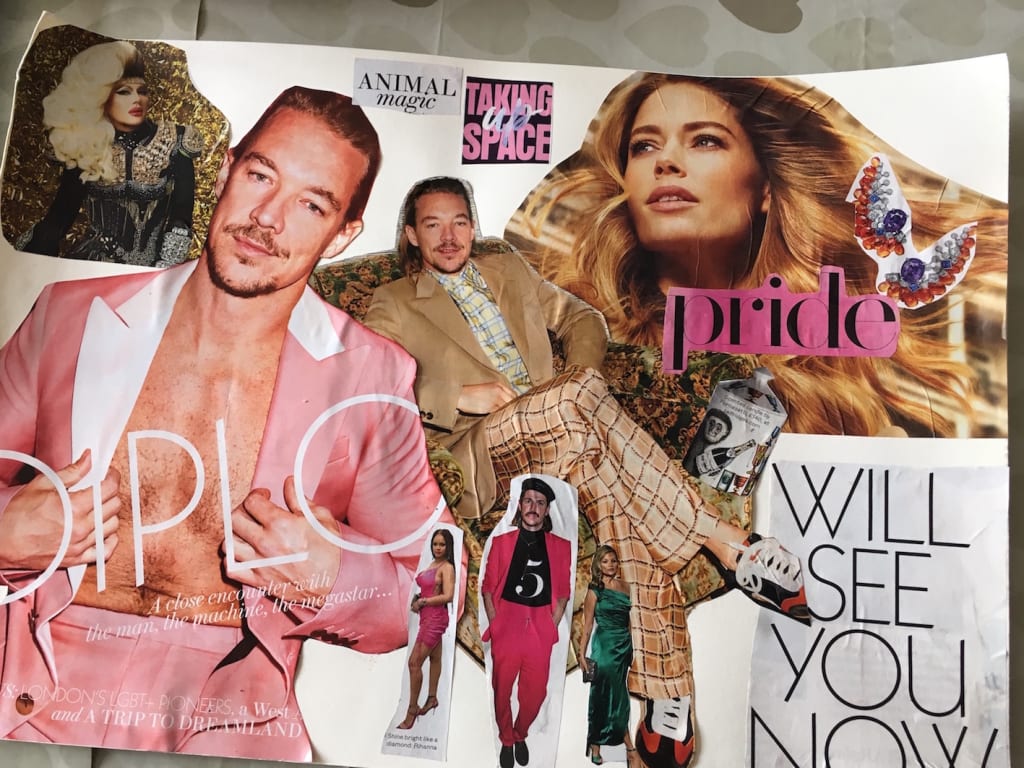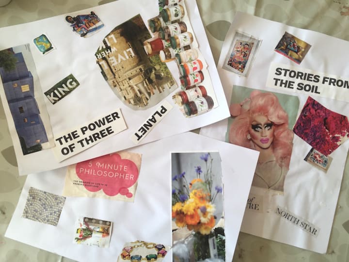 You can collage a vision board to manifest your dreams, your goals for the year, the job that you want, the person you want to become. You can collage to quite literally create your happiness.