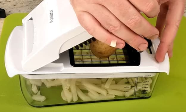 The Mueller Pro-Series 10-in-1, 8 Blade Vegetable Slicer and Onion Mincer Chopper is an absolute essential for any kitchen. This multifunctional device not only slices, dices, and chops veggies, but it can also cut eggs and even mince onions. The interchangeable blades make it easy to create a variety of different cuts for any recipe.