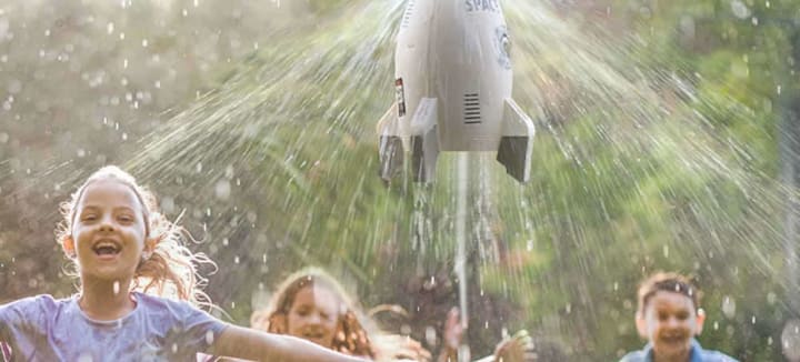 Introducing the Rocket Sprinkler for Kids, the ultimate summer toy that guarantees endless fun and excitement! Designed to keep kids cool during hot summer days, this sprinkler is perfect for backyard parties and outdoor playtime. Simply attach a garden hose to the thrust controller and watch as the rocket balances on a stream of water. Once in position, the rocket's nose cone sprays water, delighting those brave enough to run underneath. Made of high-quality ABS material, this sprinkler is safe, durable, and gentle on children's skin. It even comes with space-themed stickers for a customizable experience. It's the perfect gift for birthdays, holidays, or any warm day filled with outdoor water activities. Let the Rocket Sprinkler take your summer fun to new heights!