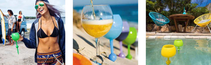 Whether you’re floating in the pool with the girls, sunning on the beach with your friends, or relaxing in a hot tub, the Beach Glass is just what you need to hold your favorite drink! This unique drinkware equipped with a durable holder is ideal for keeping your drink safe in the sand, grass, and snow. It even floats in the water! Now you don't have to worry about the party stopping when your drink spills. These high-quality, acrylic, better-than-stemless glasses are one of the must-have accessories for vacations!