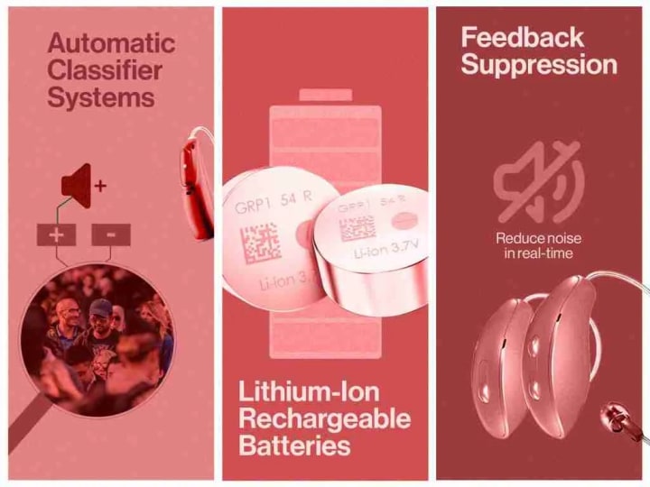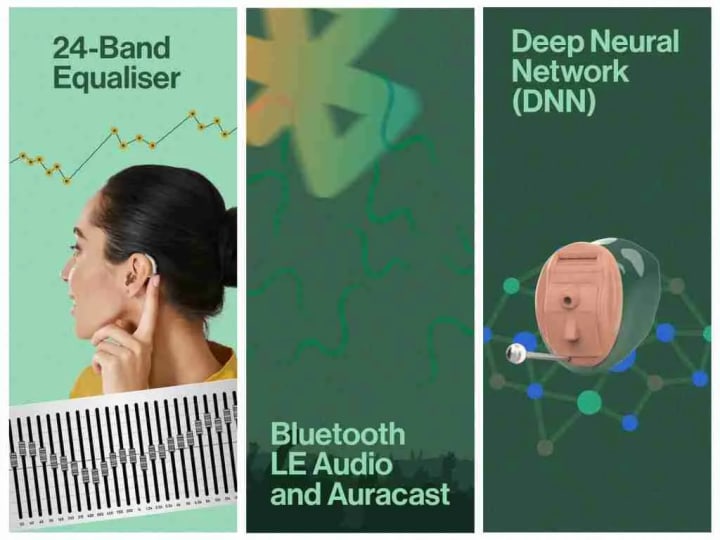Deep Neural Network (DNN) Trained Hearing Aids: In these hearing aids artificial intelligence is used to distinguish between background noise and speech clarity. They learn from millions of sound samples to determine what you want to hear, much like a human brain that has been educated. With Deep Neural Network (DNN) technology, conversations become easier as it improves sound clarity by 10 to 13 dB compared to the 5 to 6 dB that conventional hearing aids, particularly in busy, noisy places like restaurants and public areas. This invention reduces strain and improves the comfort of daily living by making hearing feel more natural.