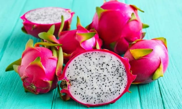 Dragon fruit, also known as pitaya, is known for its vibrant pink or magenta-colored flesh. The color of dragon fruit is primarily due to the presence of natural pigments called betacyanins. Betacyanins are water-soluble pigments that belong to the larger group of compounds known as betalains.