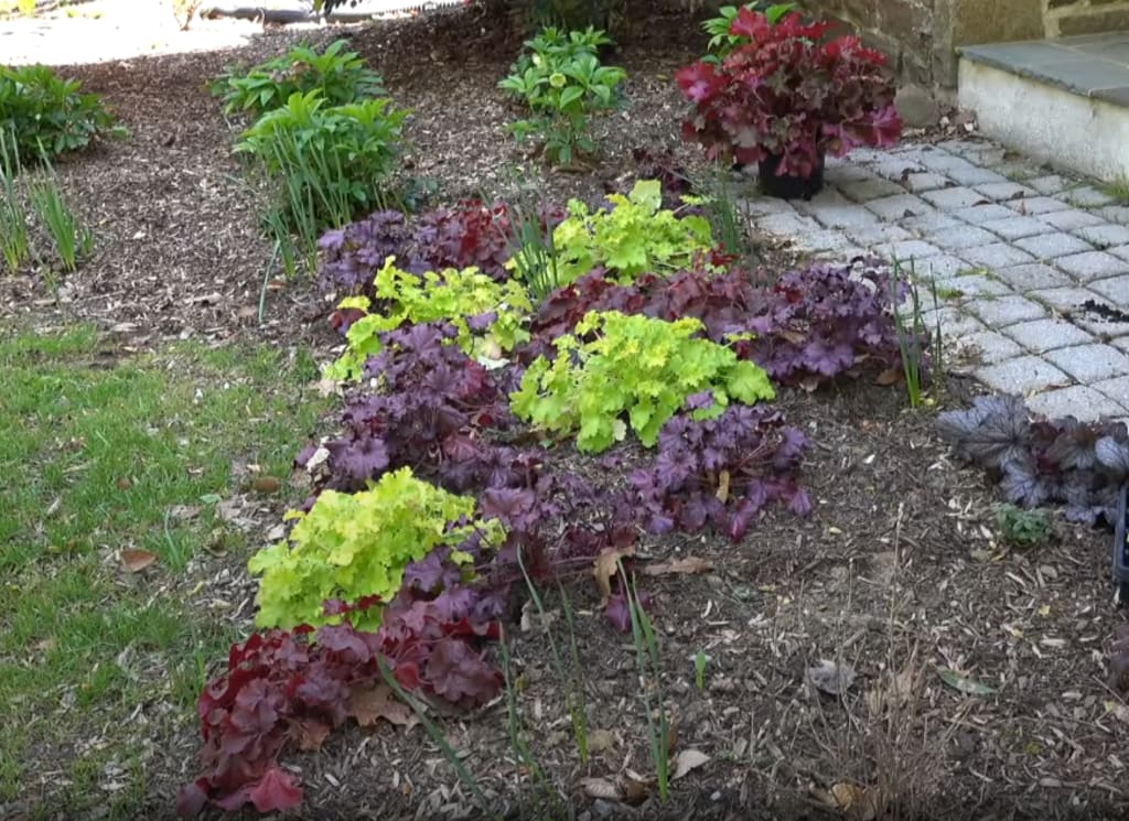 One particularly effective combination I've found is planting Heuchera American alongside ferns and hostas. This combination not only enhances the visual appeal of the garden but also creates a naturalistic setting that resembles a forest.