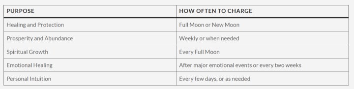The frequency of charging crystals in Hoodoo largely depends on their use. Here’s a general guideline: