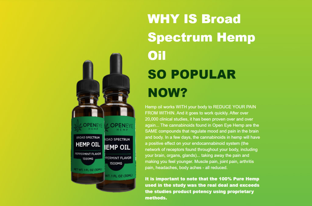Open Eye Hemp Oil is a popular natural solution utilized for typical illness. It is a good product for all individuals to use, particularly in unwinding discomfort. This Hemp oil is good to take and work appropriately to allow go body discomfort as well as psychological tension. This Open Eye Hemp Oil is made by organic Hemp from marijuana plant. Scientific research studies verify that uses of this oil might alleviation anxiousness as well as persistent pain.