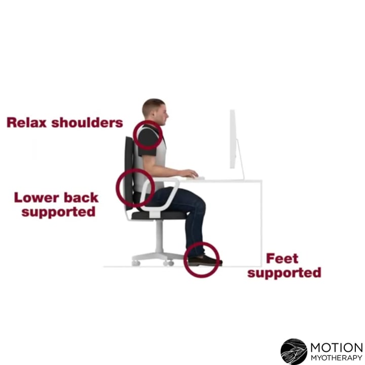 Put these postural tips into place for your health and work towards permanently fixing your bad posture. Good posture means less back pain, neck strain with associated headaches and increased productivity. Motion Myotherapy can help correct your posture today.