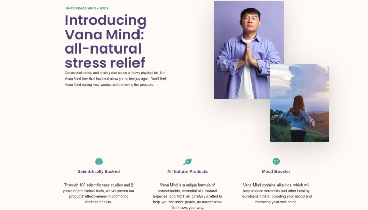 According to the official website, Vana Mind can help support a better response to stress and anxiety, promote inner peace, and support overall mental health and wellness, among other benefits.