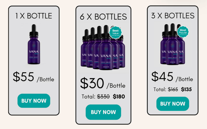 Vana Mind is priced at $55 per bottle. However, you could pay as little as $30 per bottle by buying multiple bottles of Vana Mind directly from the manufacturer today.