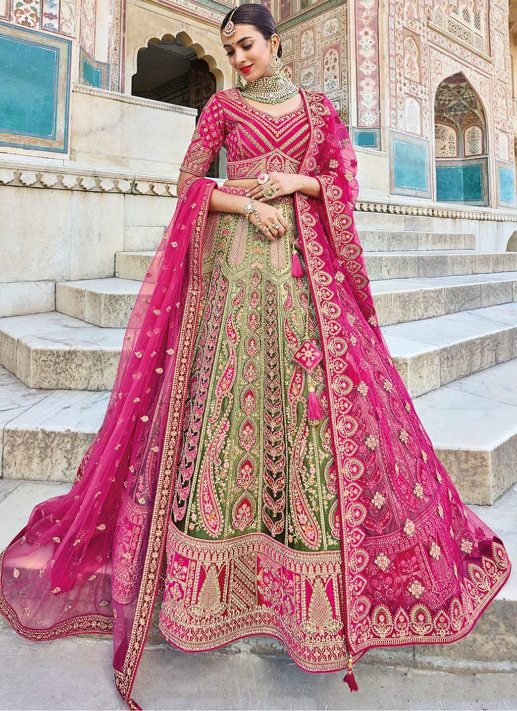 Traditional Lehengas: Perfect for brides and those who want to stick to cultural roots. These lehengas feature classic embroidery and fabrics.