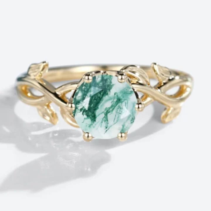 For those drawn to the past, a vintage moss agate ring offers timeless sophistication. Think engraved bands, milgrain details, or nature-inspired elements like leaves, vines, and flowers. These rings feel like heirlooms from another time—ideal for romantic souls who appreciate craftsmanship with character.
