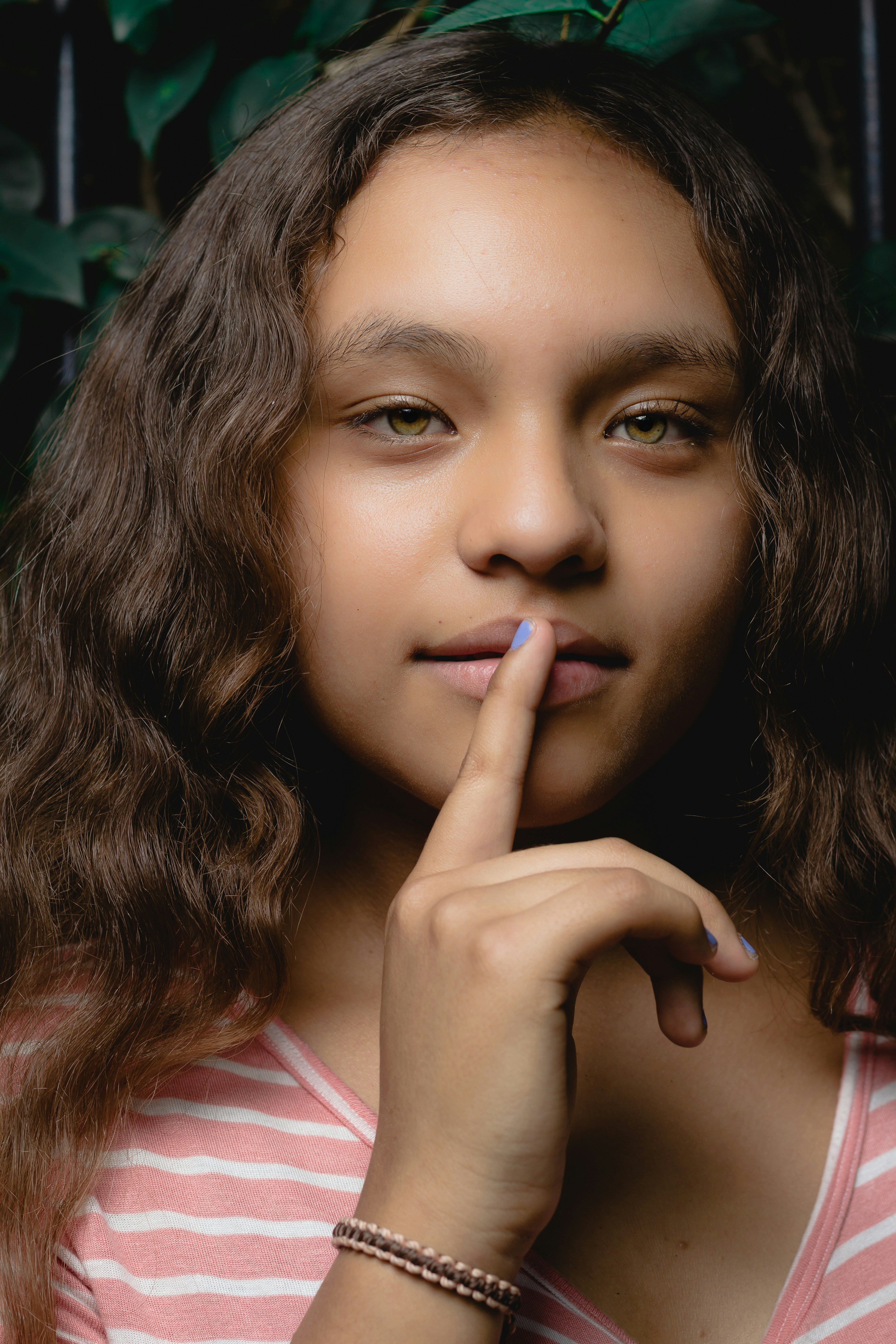 1. To begin, bring your right hand up to your face and press the tip of your thumb lightly against your right nostril.