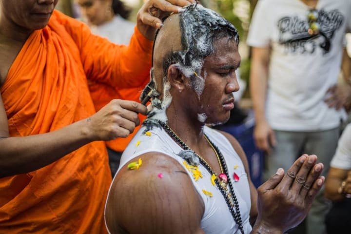Buakaw's devotion to his country's traditions extends beyond martial arts. He shaved his head and wore the monk's robe not only as a religious practice but also to honor the late King Bhumibol Adulyadej.