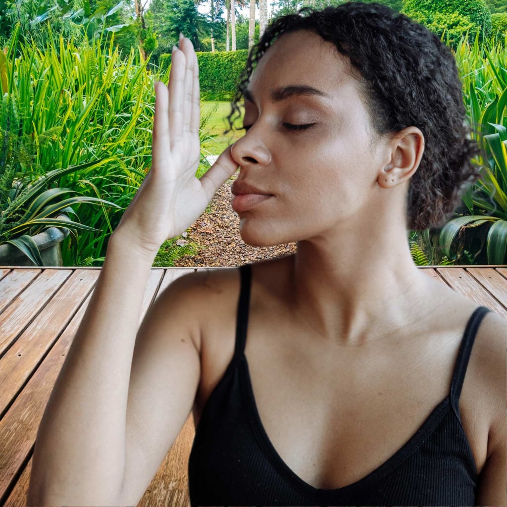 Another method is alternate nostril breathing, a practice rooted in Ayurvedic tradition. Close your right nostril with your thumb and inhale deeply through your left nostril. Pause briefly, then close your left nostril with your ring finger and exhale through the right nostril. Inhale through the right, pause, and exhale through the left. Repeat this pattern, harmonizing the flow of breath between both nostrils. Feel the balance and harmony it creates within you.