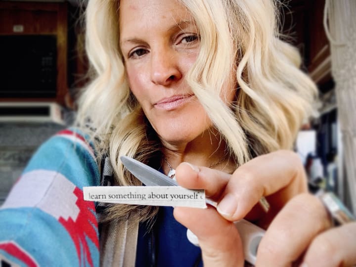 I learned to scour every piece of clothing that I had clinged so tightly to, every book, every scrap, every memento; for the little piece of it that mattered most. I tore out my favorite pages of books. I cut out the beautiful embroidered pieces of my clothing. I sliced words out of magazines and manuals and junk mail. I identified the parts that felt the most like me . . . and I cut away everything else. It’s what had to be done. We could only keep enough to fit into a little RV.