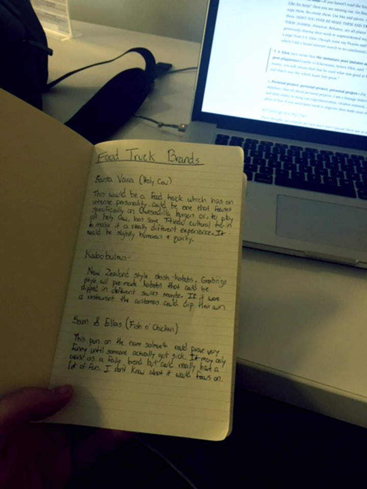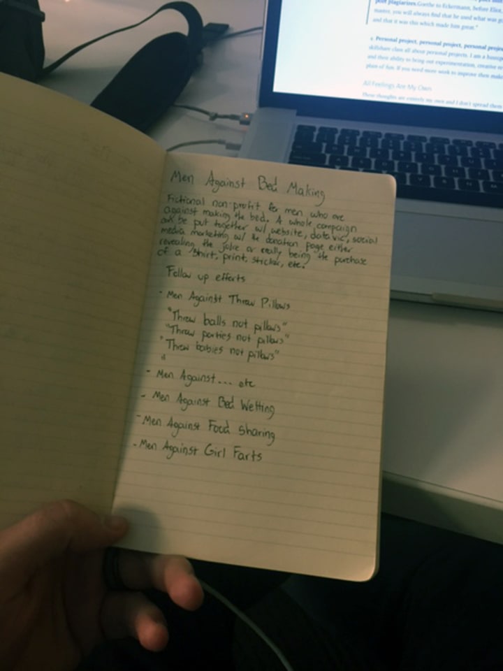 4. Personal project, personal project, personal project—I’m building a skillshare class all about personal projects. I am a huuuge believer in them and their ability to bring out experimentation, creative renewal, and just plain ol’ fun. If you need more work to improve then make your own. I have a whole journal full of silly, fun personal project I want to get started on.
