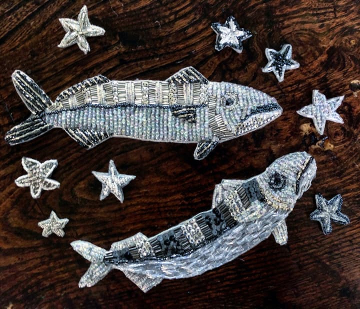 I began to feel like myself again, and other things came back to me too. I went for walks at dawn to hear the birds, I gathered herbs and baked, I looked after my skin, I stopped thinking that my life was a disaster and I began to care about my happiness. Each bead, each row and each line started to feel like an achievement. With a final knot and snip, I would look down proudly as each element of my Stargazey Pie grew before my eyes.