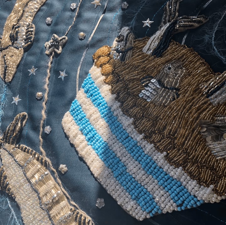 I sewed each bead down, one at a time, row after row, hour after hour, day after day. A kind of rhythm formed, a zen I hadn't felt for years. I was okay, I was safe, I was creating... and it was it glorious.