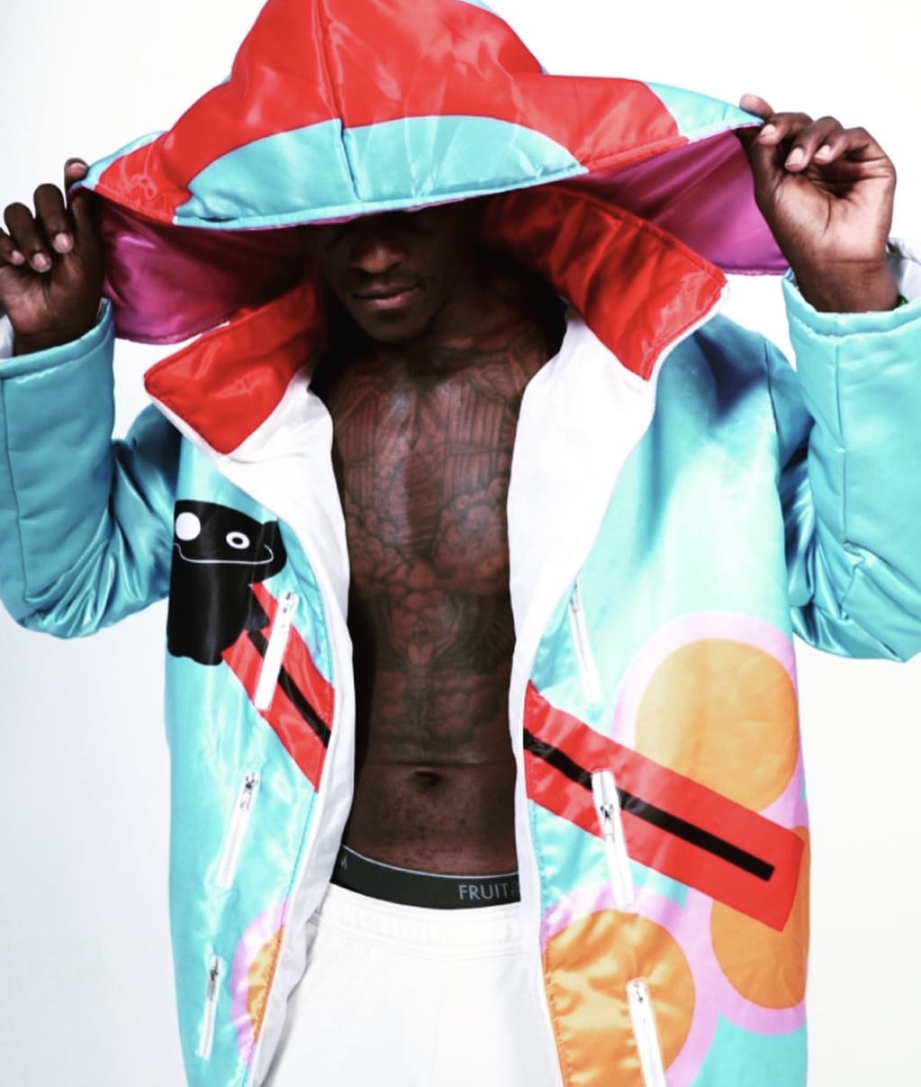 Art and soul music has always been there. So I’ve always had love for art and while being a high level athlete, how god made to be, sometimes it was hard finding clothing especially at my size. Imagine being 18 years old, 6’7 250lbs wearing a size 14 and only being able to wear sweat pants. Now 10 years later I’m apart of runways and helping other designers and music artists for their designs and projects. Since I was 3 years old as a child, I would draw on my walls and clothes. I would cut my jeans and sleeves off of my shirts. Deconstructing and constructing back together again, with different pieces of clothing fabrics. I love the way garments feel and how it lays on the persons body. Seeing different shape patterns and having the curiosity to find comfortability my niche.