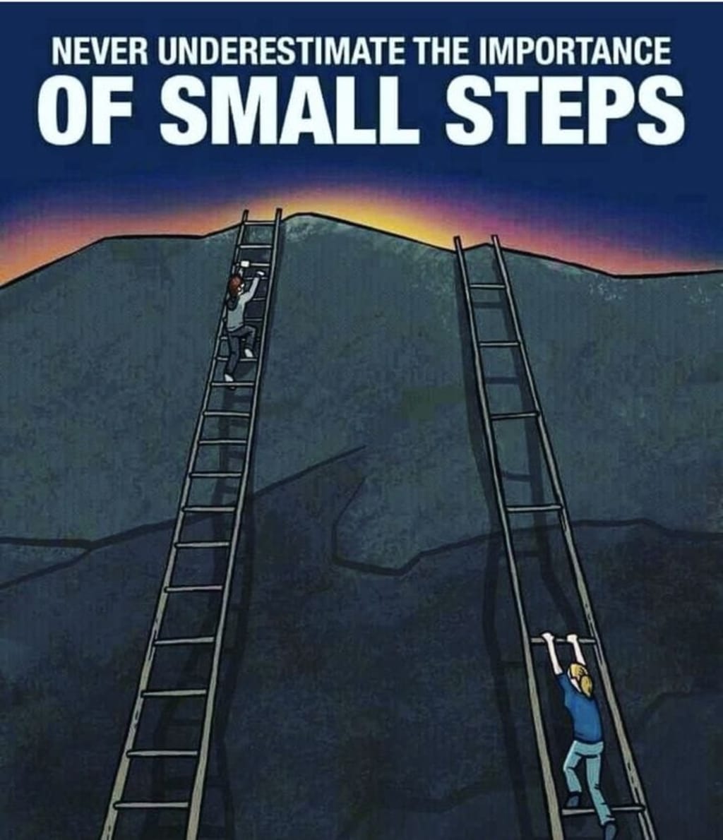 He remembered the boy on the ladder and whispered to himself, “Never underestimate the importance of small steps.”
