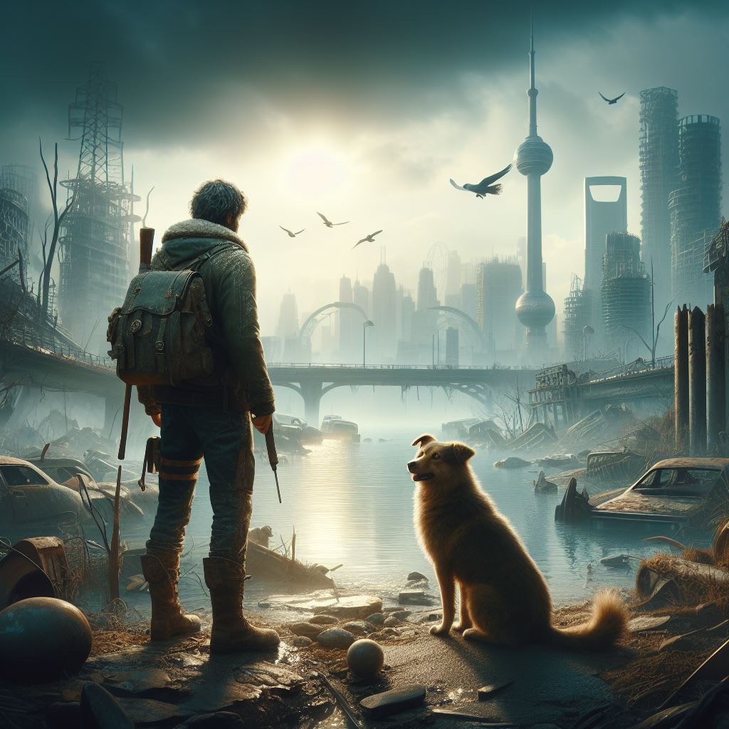 In the aftermath of the cataclysmic event that had shattered the world, leaving it a barren wasteland devoid of its former splendor, Mr. Smith and his loyal companion, Goldie, embarked on a perilous journey through the remnants of civilization. The once-thriving cities now lay in ruins, their towering skyscrapers reduced to rubble, and their bustling streets eerily silent save for the haunting echoes of the past.