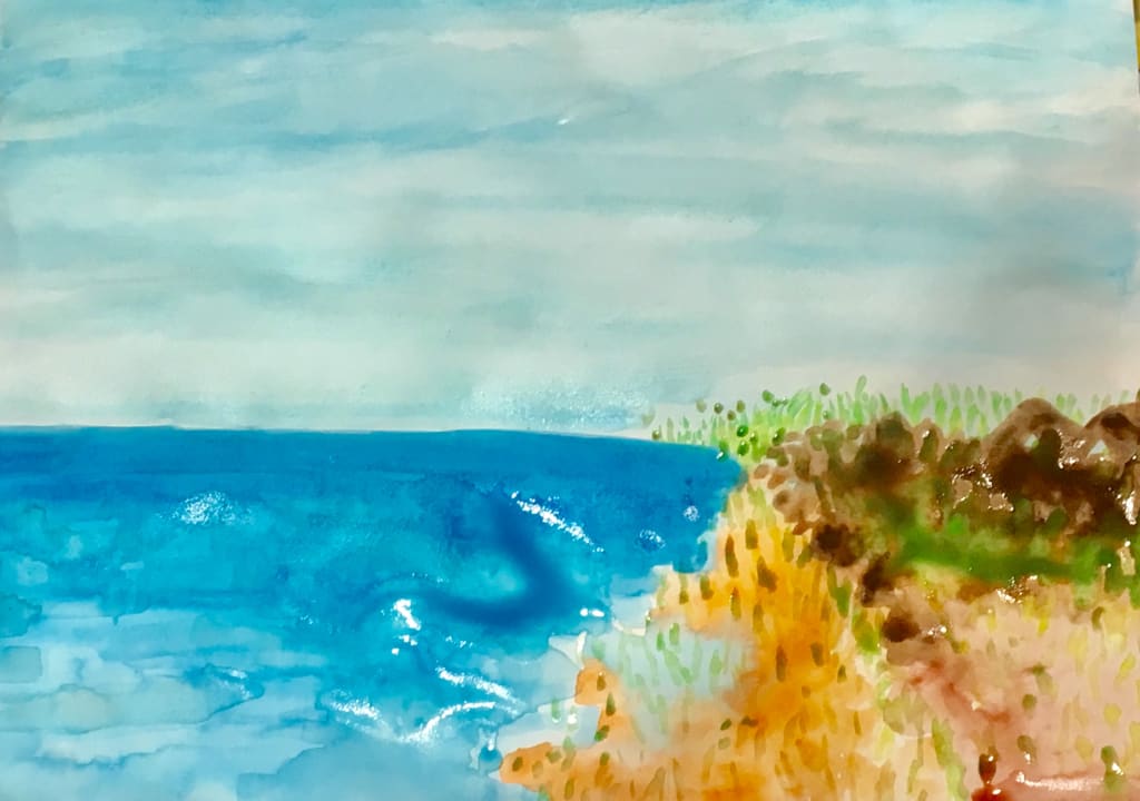 Last October, I got into the habit of chasing the setting sun. Riding my bike forward as fast as I could, I felt my fast punching heart, the speedy wind crossing through my hair, and the blurry sceneries I left behind. I fixed my eyes at the sunset, resisting to move away. The sunset moved closer and closer like a dolly-in shot. I forgot about time, until night poured blue and black ink onto a light-blue paper. I gazed at the vanishing sunset and felt more confident about life. How I wished this beautiful scenery could last forever.