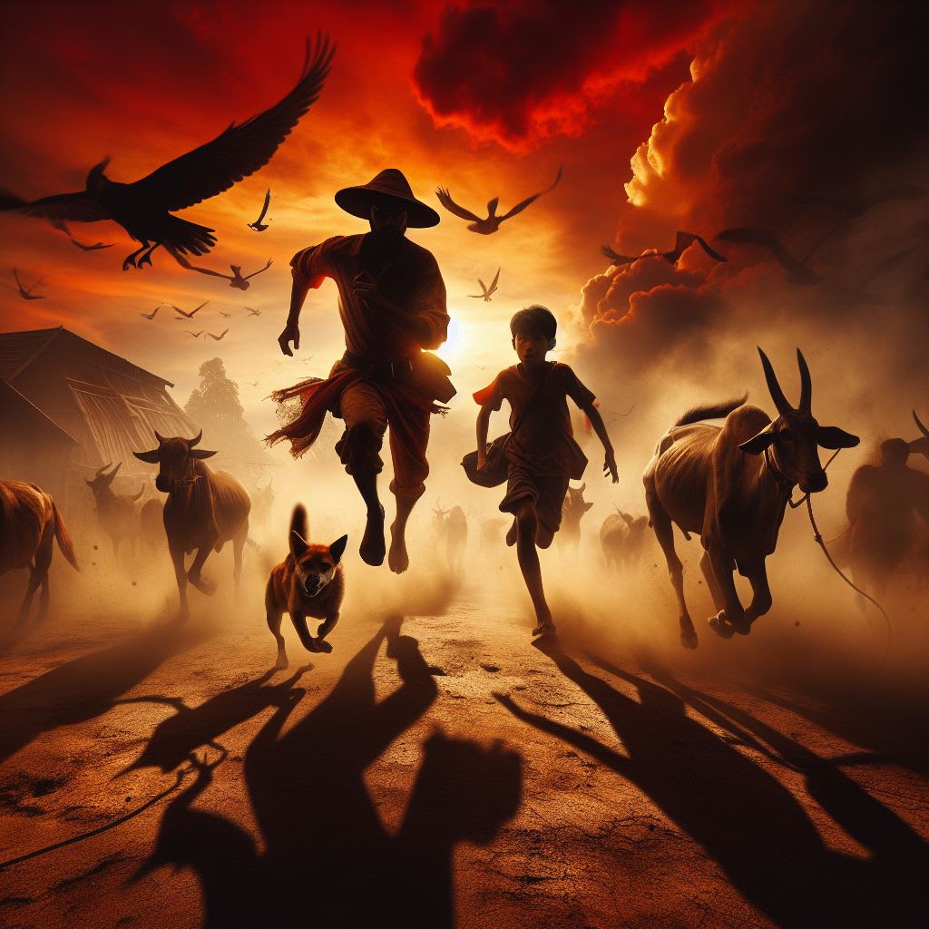 For hours they ran, their breath coming in ragged gasps as they navigated the treacherous terrain of the forest, their only guide the distant sound of rushing water that promised sanctuary and safety. With each passing moment, the forest grew darker and more ominous, its ancient trees casting long shadows that seemed to reach out and ensnare them in their grasp.