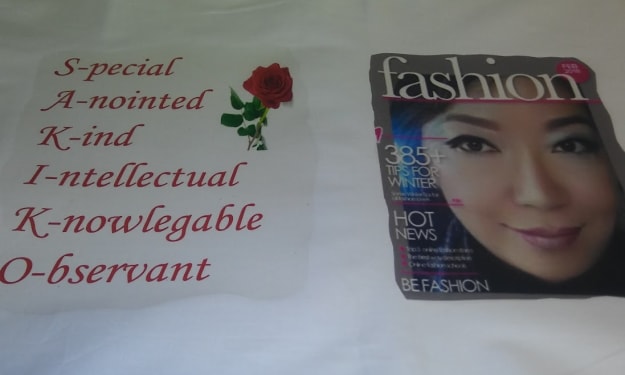 I love to create cards, pillows, shirts, and whatever comes to mind! I use iron-on transfer sheets and cut out my creations. I design pillowcases for friends and family members. It could be a birthday, anniversary, or a welcome home celebration. I just like to capture the moment and design a pillow to match. I also design pillowcases to simply uplift someone's day. I usually take the person's picture and create an acrostic poem that embodies his/her personality. I have a full-time job and family, but creating memorable pillows represents one of my passions. I create everything at home and hope that one day I can turn my passion/hobby into a small business, but until then I will continue to try to brighten people's day! The pillowcase that I have created here isn't a picture of an actual magazine, it's simply clip art and a background scene!
