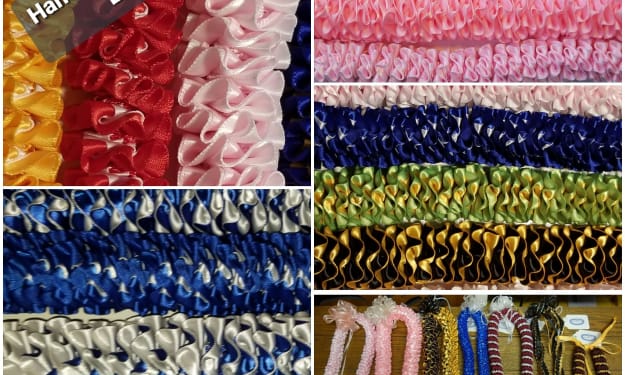 I was born and raised in Hawaii. Hawaii, a place so unique, from our beautiful beaches, exotic foods, many different cultures and right down to our "Aloha" spirit, no where in the world can compare. That being said, Hawaii has many unique traditions. One of these is the art of the lei. In older times, leis signified royalty and their ranks. Leis were made from a multitude of items, such as flowers, leaves, shells, nuts, feathers and sometimes even the bones of animals. Fast forward to modern day and the advent of tourism. The lei became the symbol of Hawaii. So much that they are an important part of Hawaii celebrations, birthdays, anniversaries and especially graduations. Covid has changed so much of our way of life. Lei gifting is still very important here in Hawaii. The lei is a symbol of love, friendship, celebration and honor or greetings. It is essentially the symbol of Aloha. Tweaking the original floral lei to make something more stable and lasting, ribbon lei making was born. While the style has changed, the etiquette of lei giving and wearing still remains the same. Anyone can wear a lei. A lei greeting is very important and should never be refused. It is often presented with a kiss and or a hug. It is customary to wear the lei as long as the person who gave it to you is present. Removing it is a sign of disrespect