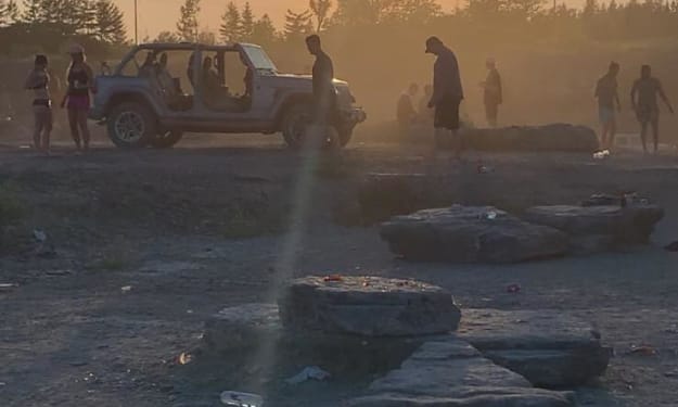 Living in a small town can be pretty boring sometimes. Whether it be walking the same roads and bike trails or visiting the same old restaurant you've been going to for years. Seeing the same people everyday at the local gas station so much they know you by your name can sometimes make you feel you may never really leave that town and if you do you may find yourself walking back down that street you grew up on a few years down the road looking to purchase a house. It can be scary to think there is a chance you may never really experience life to it's fullest if you stay around in one place. Stopping to realize there is some beauty to that town your so scared to be stuck in can change the way you think, not only about the town but life in general. Hi I'm Brian and for 25 years I've been in the same town and have caught myself feeling stuck here. It takes nights like these for me to remember that there are good things about being here. This local quarry where we go to swim and have some summer fun really does wonders when you just need to let go and relax. The dusty air from people burning out in their jeeps to the high cliffs you jump from to feel a sense of being alive all tie into what makes this place such a beautiful spot. Sometimes to bring people together all you need is to drive down that dirt road and have a chat with a bunch of strangers. We all feel like we can be lost sometimes and feel that nothing will ever change, but if you go down this dirt road there are people waiting there to let you know your not alone in feeling that way and you can talk about your dreams and goals over a few cold ones with the other lost. One day you will look back and realize you were not as lost as you once felt and that things can change so quickly you don't even notice them changing. You may actually want to go back and visit that place you once felt stuck in because you wish you could have it all back. The simple times flying down the dirt roads listening to your favourite songs with your favourite people. We tend to loose sight of what is truly important trying to chase a false sense of happiness. "I need to buy that big house with the big backyard. I need to make so much money that I can buy anything I want to make me happy. You ever seen a sad person on a big boat? Ya me either so don't tell me money can't buy happiness" We tend to loose our selfs in these dreams we make up in our heads because society says that is what will make us happy. In doing so we tend to let magical moments like these slip through cracks of our fingertips to be lost in the false sense of security that has been tattooed into our brains by the bougie and fabulous things we see in our media. Looking out at the crowd of people I see before me while attending a social gathering at this amazing place reminds me that. Maybe, just maybe. There is happiness to be found beyond the things we feel we need to reach if we just open our eyes to see what is right in front of us. So drive down that dirt road, blast some music, and most importantly have fun! We all end up in the same place at the end.