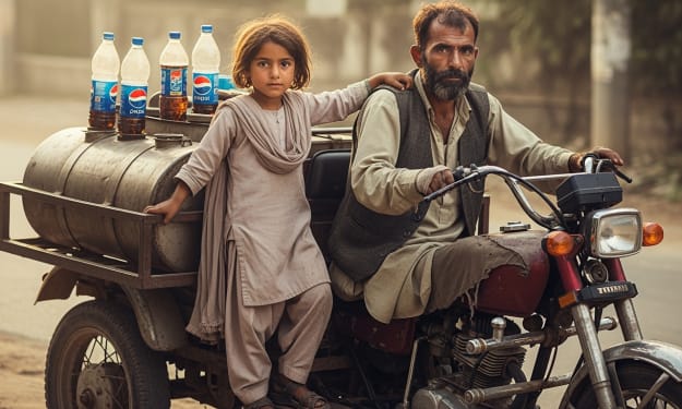 In the narrow, sun-scorched streets of a small town in Pakistan, a three-wheeled motorcycle rattles its way through traffic. On its cart sit rows of recycled glass bottles, each one filled with petrol. The driver, Wali Khan, steers with his left hand—the only one that still works. His right hand and leg remain lifeless, paralyzed since the night tragedy struck in 2018.
