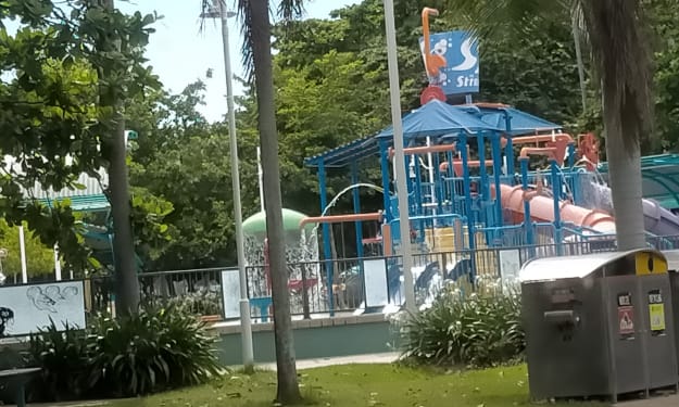 It was Sunday in Townsville, in Far North Queensland... They say its beautiful here one day and perfect the next. The heat and combined humidity in February and March can be murder. People tend to spend a lot of time in aircon malls or at our waterfront precinct referred to as the strand. Spanning 2.2 km's of waterfront it is dotted with bbq areas and benches and picnic tables. Some of the eating areas are surrounded by gardens and this is where I first saw the little black book hiding under a bush....