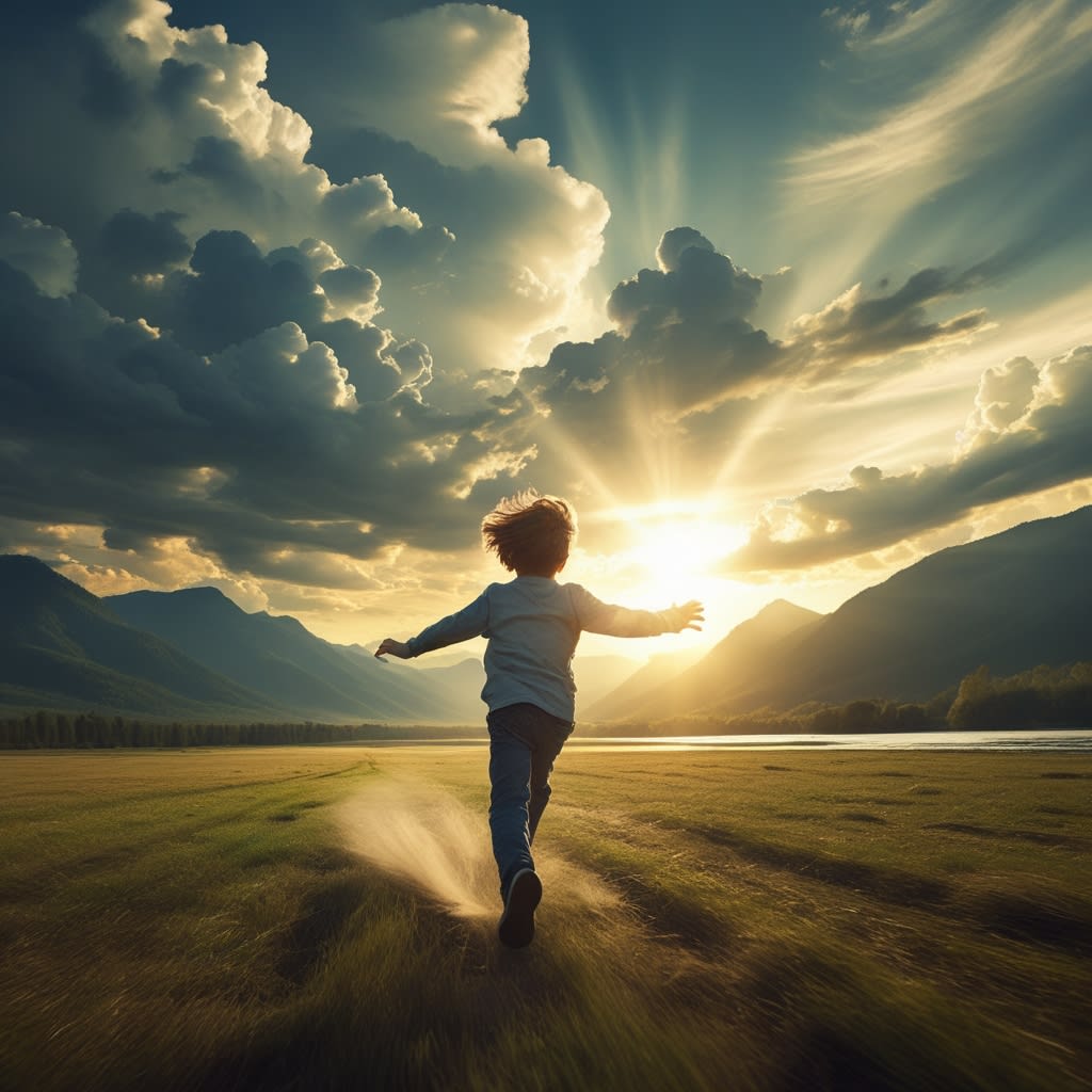 In the small village of Eldergrove, nestled between rolling hills and whispering forests, lived a boy named Elian. He was twelve, with wild brown hair and eyes that gleamed like polished river stones. Elian was known for his restless spirit, always running through fields, climbing trees, or staring at the sky as if it held secrets only he could decipher. But what set Elian apart was his fascination with the wind. To him, it wasn’t just air moving through the world—it was alive, a mischievous spirit that danced through the village, rustling leaves, teasing kites, and slipping through his fingers whenever he reached for it. One autumn evening, as the sun dipped below the horizon and painted the sky in hues of orange and violet, Elian sat on the hill overlooking Eldergrove. The wind was strong that night, tugging at his clothes and singing in his ears. “Where do you go?” he whispered, as if the wind might answer. His grandmother, Old Mara, had told him stories of the wind’s origins—tales of a great spirit named Zephyr, who roamed the world, carrying dreams, secrets, and forgotten songs. Elian didn’t know if the stories were true, but he felt the wind’s pull in his bones, like a call to adventure. That night, Elian made a decision. He would chase the wind, follow it wherever it led, and discover its secrets. He packed a small satchel with bread, a waterskin, and a worn cloak, then slipped out of his house under the cover of darkness. The village was quiet, save for the wind’s restless hum. Elian closed his eyes, feeling the breeze brush his face, and ran in the direction it seemed to beckon—toward the Whispering Forest. The forest was dense, its trees ancient and gnarled, their branches swaying as the wind wove through them. Elian’s heart raced, but he pressed on, following the wind’s fleeting whispers. Sometimes it seemed to guide him, swirling around him in playful gusts; other times, it vanished, leaving him alone in the dark. Hours passed, and the forest grew thicker, the air colder. Doubt crept into Elian’s mind. What if the wind was just air, nothing more? What if he was chasing a childish dream? As dawn broke, painting the sky in soft pinks, Elian stumbled into a clearing. In its center stood a tree unlike any he’d seen—tall, silver-barked, with leaves that shimmered like glass. The wind swirled around it, faster and stronger, as if drawn to the tree. Elian approached, his breath catching. Carved into the trunk was a symbol: a spiral, like a gust of wind frozen in time. He reached out, and the moment his fingers touched the bark, the wind roared, lifting leaves and dirt into a spiraling vortex. From the vortex stepped a figure—a being made of air and light, with eyes like storm clouds and a voice that hummed like a distant gale. “Why do you chase me, child?” it asked. Elian’s voice trembled, but he stood tall. “I want to know you. My grandmother said you’re Zephyr, the spirit of the wind. I want to know where you go, what you see.” The figure tilted its head, its form shifting like smoke. “I am Zephyr, and I am the breath of the world. I carry the hopes of the weary, the songs of the lost, the dreams of those who dare. But to chase me is to chase the unknown. Are you ready for what lies beyond?” Elian nodded, his heart pounding. Zephyr extended a hand, and the wind enveloped him, lifting him into the air. The world blurred, and suddenly, Elian was soaring. He saw mountains capped with snow, oceans that stretched to the horizon, cities of stone and glass, and deserts where the sand sang under the wind’s touch. He heard voices—laughter, cries, prayers—carried on the breeze from every corner of the earth. The wind was not just movement; it was connection, tying the world together in an endless dance. But the journey wasn’t gentle. The wind grew fierce, hurling Elian through storms where lightning cracked and rain stung his skin. He clung to Zephyr’s presence, afraid but exhilarated. “Why is it so hard?” he shouted over the tempest. “To know the wind is to know life,” Zephyr replied. “It is joy and sorrow, calm and chaos. You cannot have one without the other.” At last, the wind softened, and Elian found himself back in the clearing, standing before the silver tree. His clothes were tattered, his face streaked with dirt, but his eyes burned with a new light. Zephyr hovered before him, its form fading. “You have seen my heart, Elian. What will you do now?” Elian thought of Eldergrove, of his grandmother’s stories, of the village children who laughed at his dreams. He realized the wind wasn’t something to catch—it was something to share. “I’ll tell them,” he said. “I’ll tell everyone what you showed me. The world, the voices, the dreams. They need to know.” Zephyr’s eyes softened. “Then you are no longer a boy who chases the wind. You are its messenger.” With a final gust, Zephyr vanished, and the wind stilled. Elian returned to Eldergrove, his satchel empty but his heart full. The villagers were stunned to see him, for he’d been gone three days, though to him it felt like lifetimes. He told his story by the fire, his words painting pictures of distant lands and forgotten songs. Some laughed, calling it a child’s fancy, but others listened, their eyes wide with wonder. Old Mara smiled, her wrinkled hands clasping his. “You’ve found the wind’s truth,” she whispered. Years passed, and Elian grew into a man, but he never stopped sharing the wind’s stories. He became a wanderer, traveling from village to village, telling tales of the world’s beauty and pain, its dreams and struggles. Children followed him, their laughter mingling with the breeze, and elders nodded, sensing the truth in his words. The wind, he taught them, was more than air—it was the pulse of life, carrying the hopes of all who lived. And sometimes, when Elian stood alone on a hill, the wind would brush his face, 