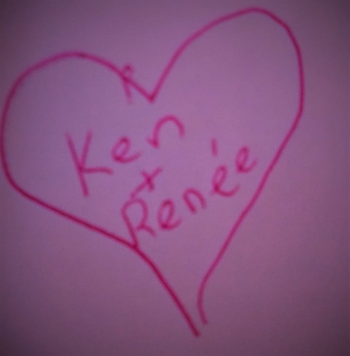 A short time after he had given me the phone, I discovered that it could write in different colors. That begged for a little creativity! So I sketched a heart in hot pink that said ‘Ken + Renee’ inside and excitedly showed it to Ken.